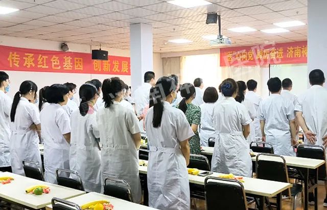活动共分为三个篇章,第一篇章“荣耀”。《国际歌》奏响,医师们全体起立,向《国际歌》致敬。神康老党员同志们,跟着哼唱,医心向党的决心坚定忠诚。